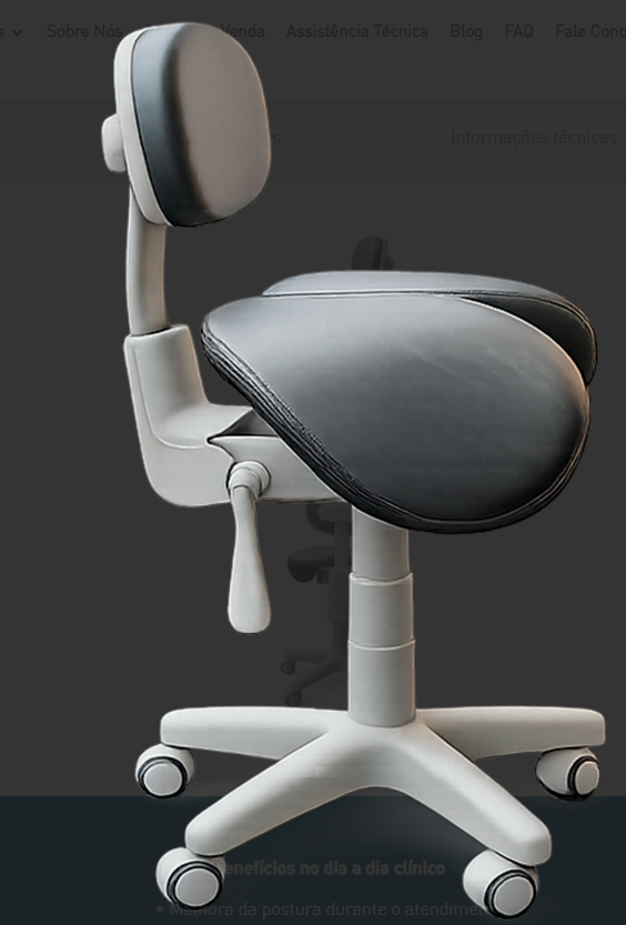 Projetado para acompanhar a rotina clínica do dentista, o mocho sela promove uma postura mais saudável, maior conforto ao longo do dia e liberdade de movimentos para atendimentos mais precisos e eficientes.